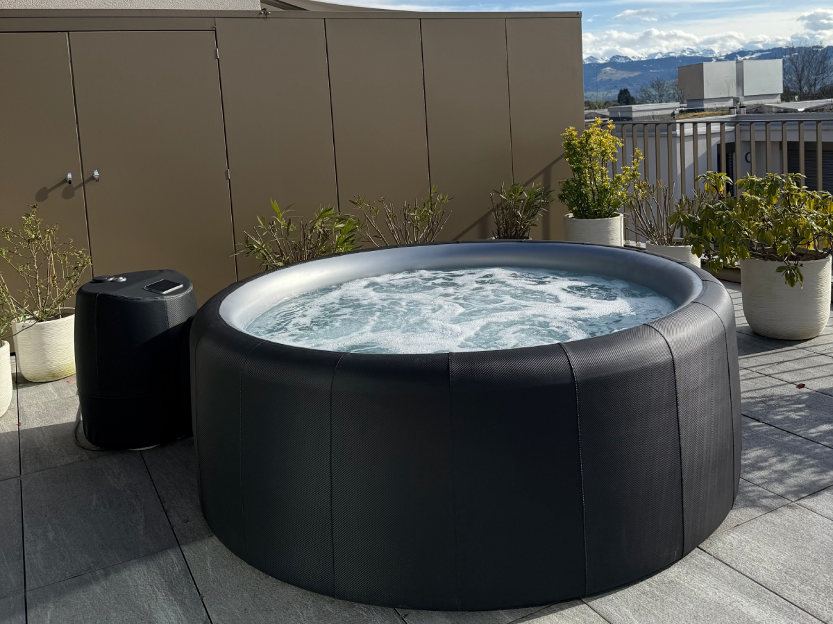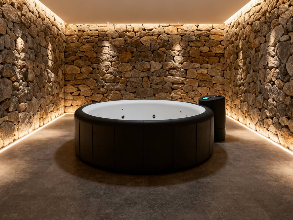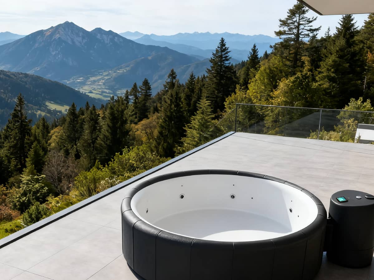 Utilizes thick wall energy insulation, fully insulated Aqua Center, and high-tech insulation flooring to minimize heat loss. The 10cm thick EPS lid provides exceptional thermal retention while the tub walls measure 17cm for maximum insulation efficiency.